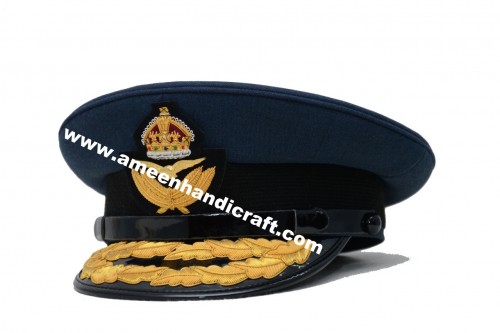 Royal Air Force Group Captain Officers Peak Cap With King Crown Badge And Gold Bullion Oak Leaves Peak.