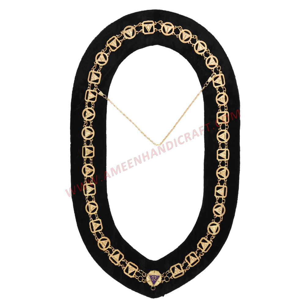 33rd Degree Scottish Rite Chain Collar -Gold Plated With Black Velvet