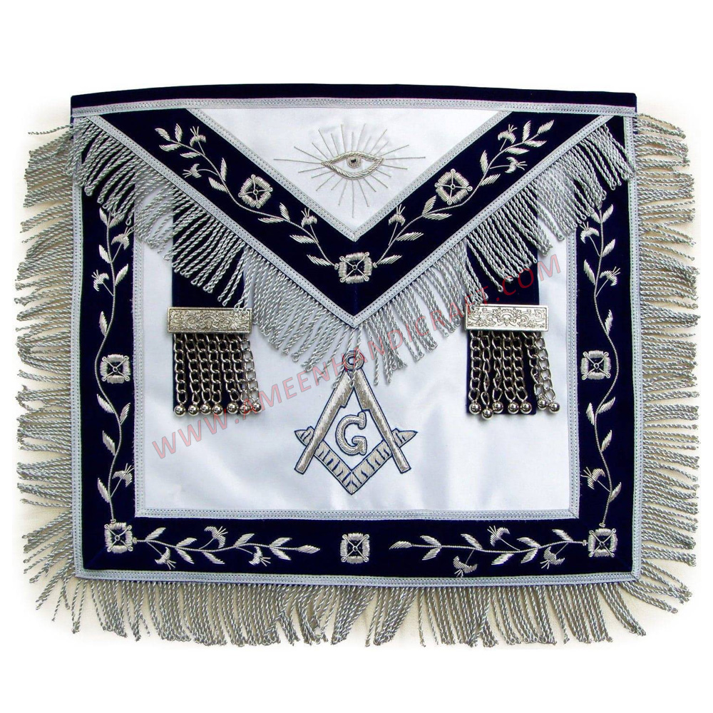 Master Mason Blue Lodge Apron - White Satin & Navy Blue