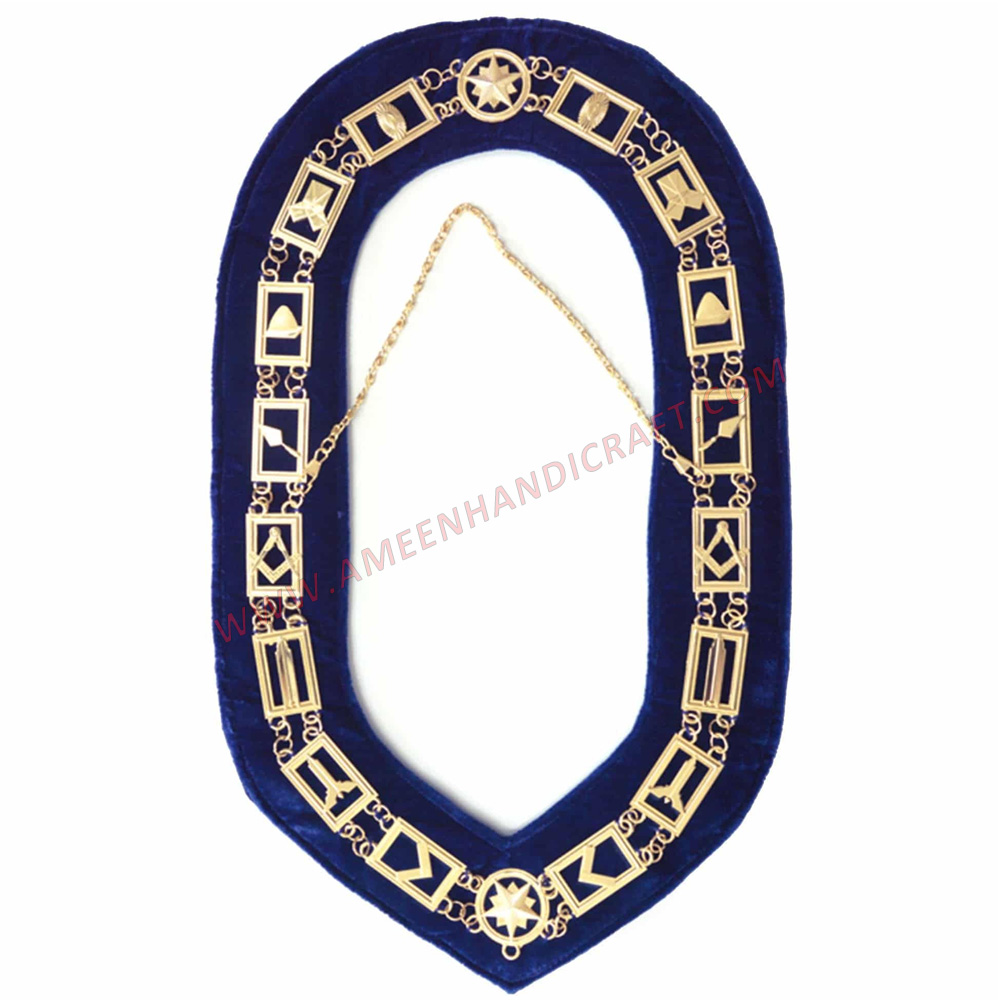 Blue Lodge Chain Collar Gold Plated on Blue Velvet